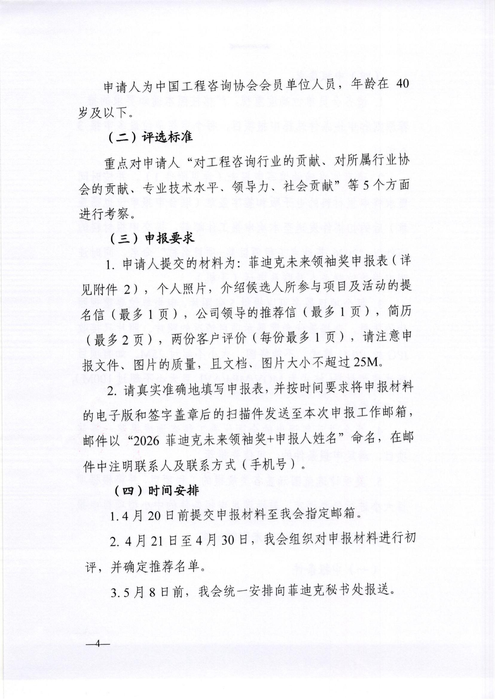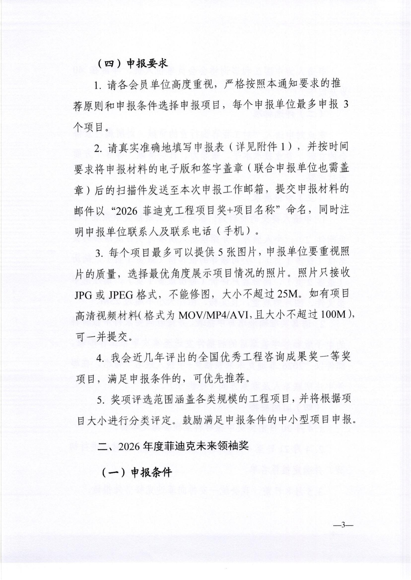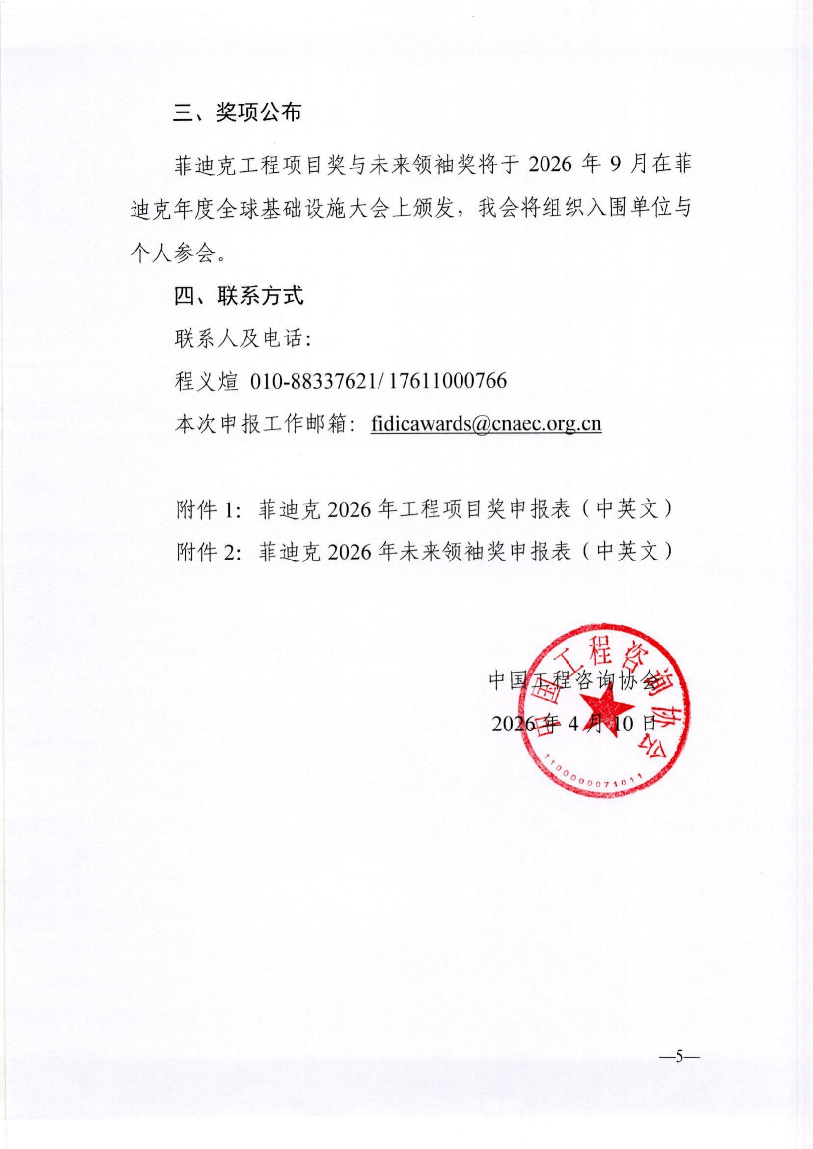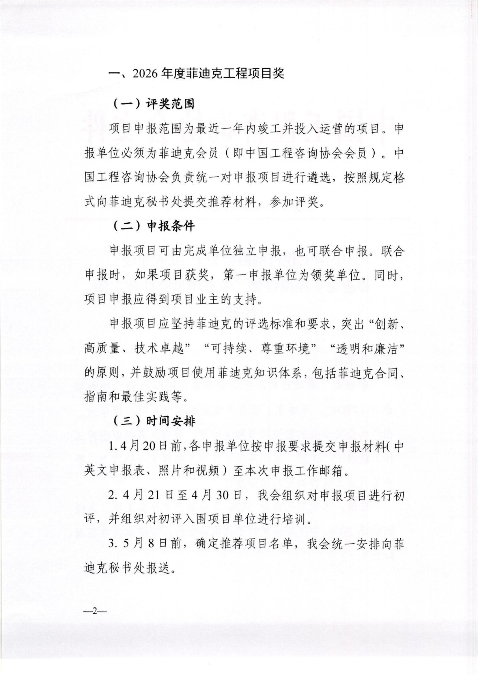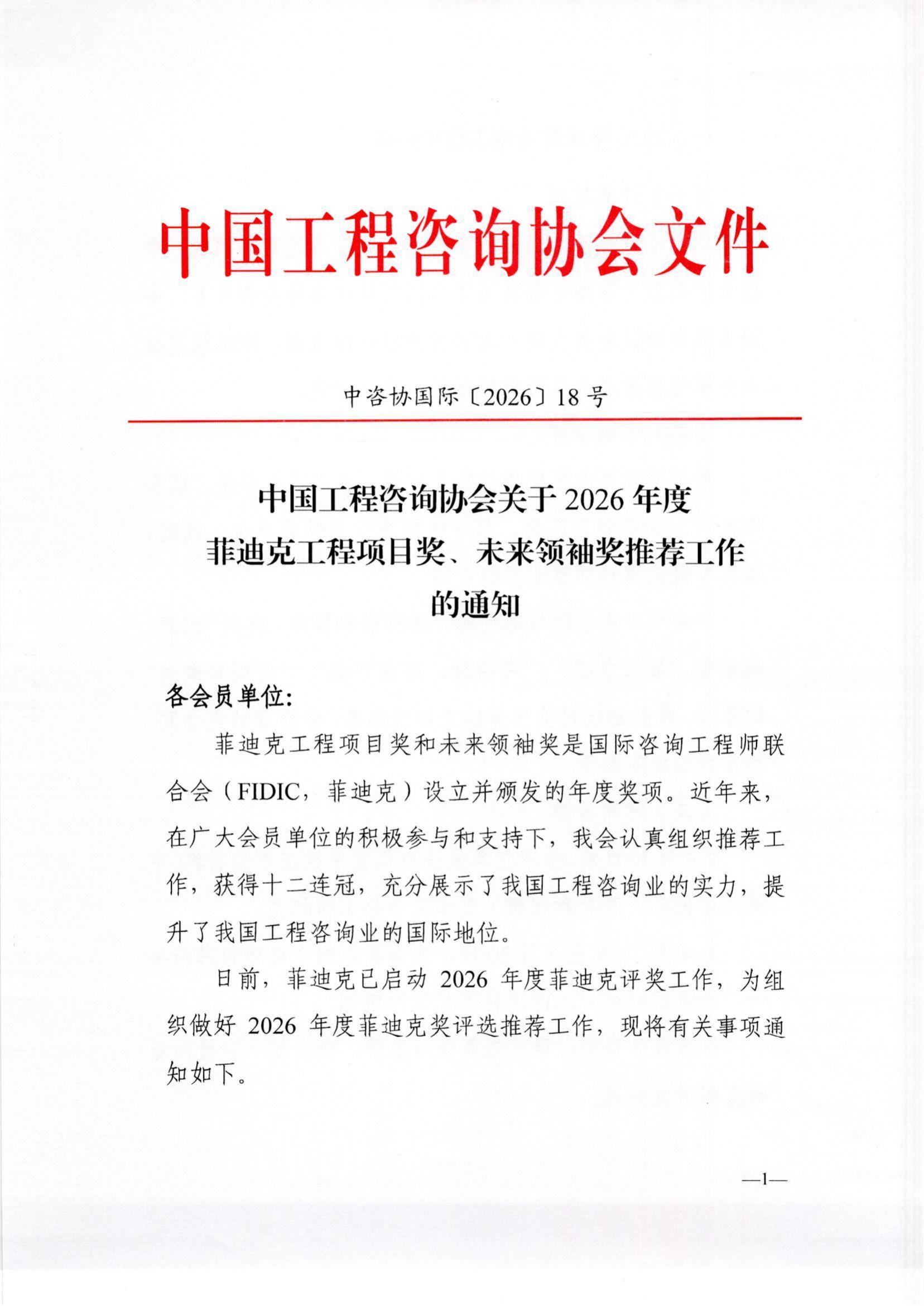 转发中国工程咨询协会关于2026年度菲迪克工程项目奖、未来领袖奖推荐工作的通知
