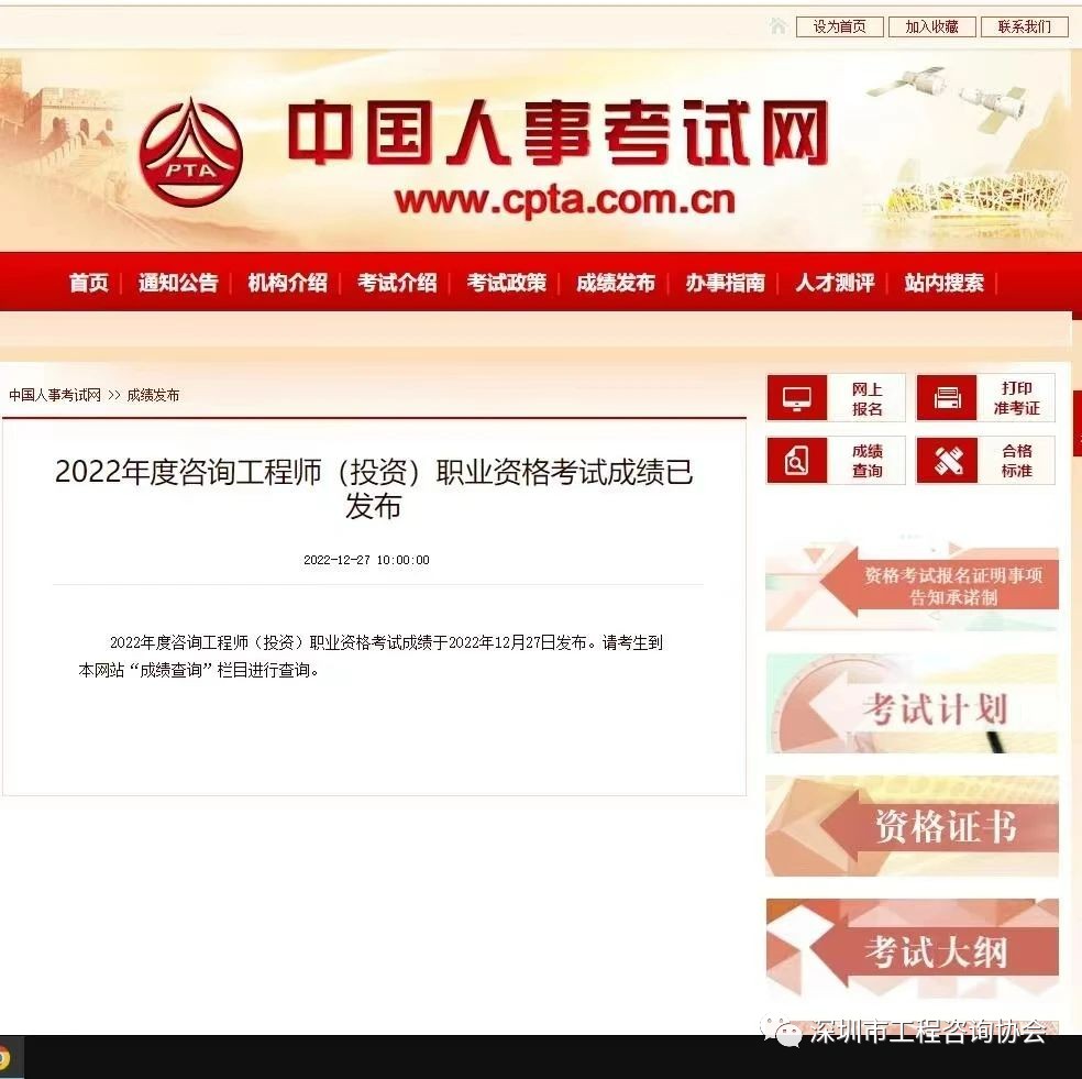 2022年度咨询工程师(投资)职业资格考试成绩已发布